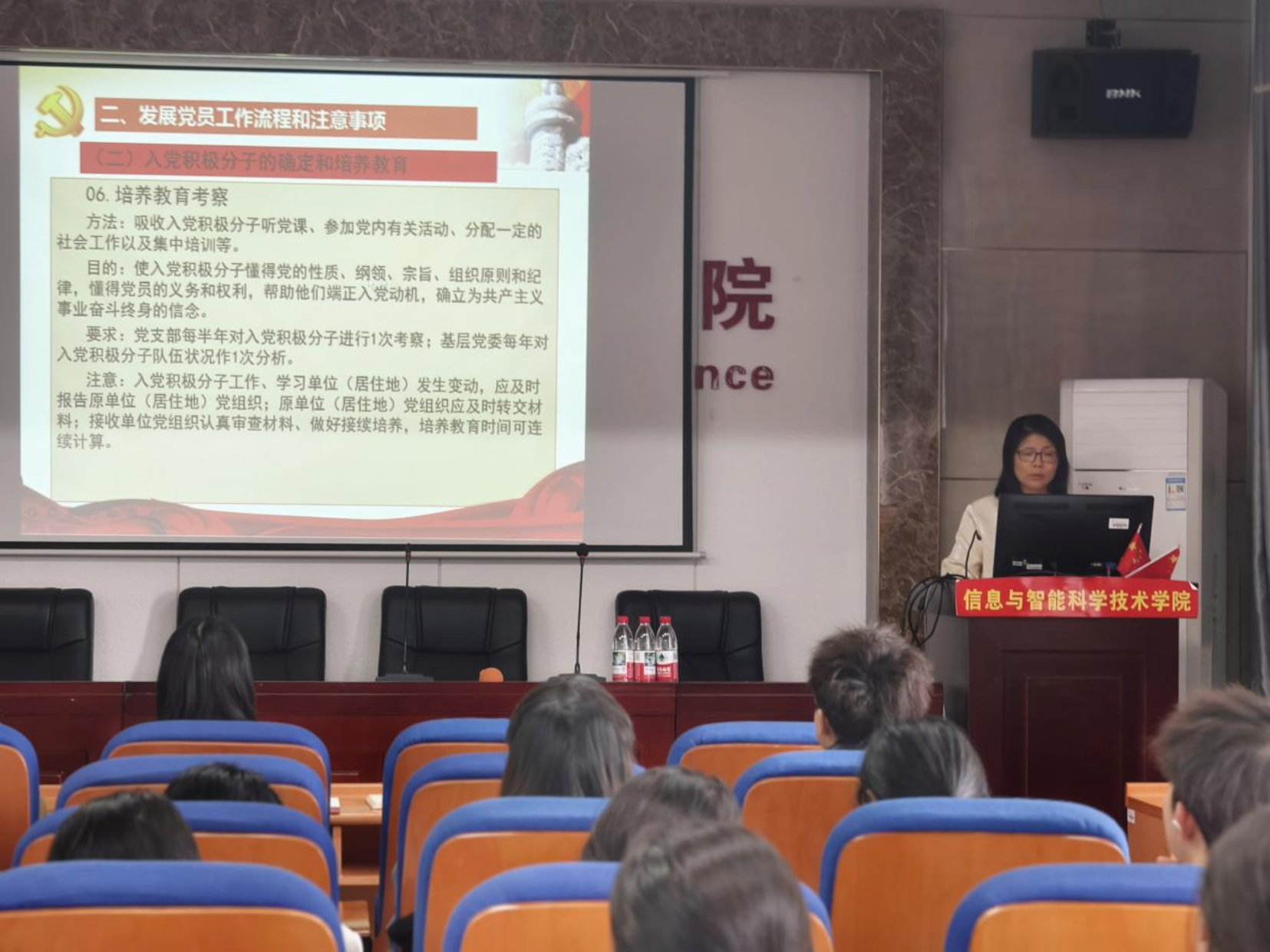 本网讯(信科学院 彭微薇)为强化党支部委员业务能力、规范党员发展流程,11月12日,信科学院在第13教学楼504教室组织开展党支部委员培训会,本次培训由学院正处级组织员曹晖主持,全体党支部委员、党员骨干参会学习。
