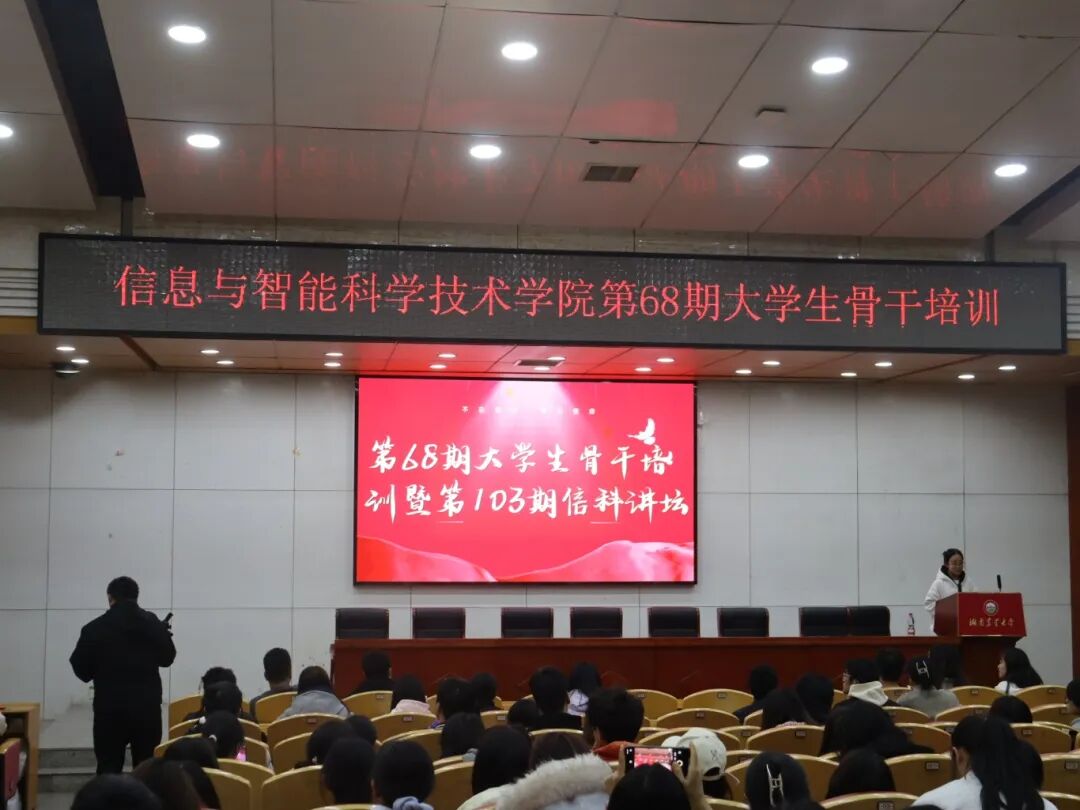 (本网讯 宣传部 王亮 庹可欣)为提升大学生骨干的综合素养与责任担当,搭建成长交流与能力提升的优质平台,信息与智能科学技术学院第68期大学生骨干培训于11月22日在学海厅举行。本次培训由优秀校友李志文、基层选调生李皓云及马克思主义学院专业教师刘子滕担任主讲嘉宾,为同学们带来了一场兼具思想深度与实践价值的学习盛宴。