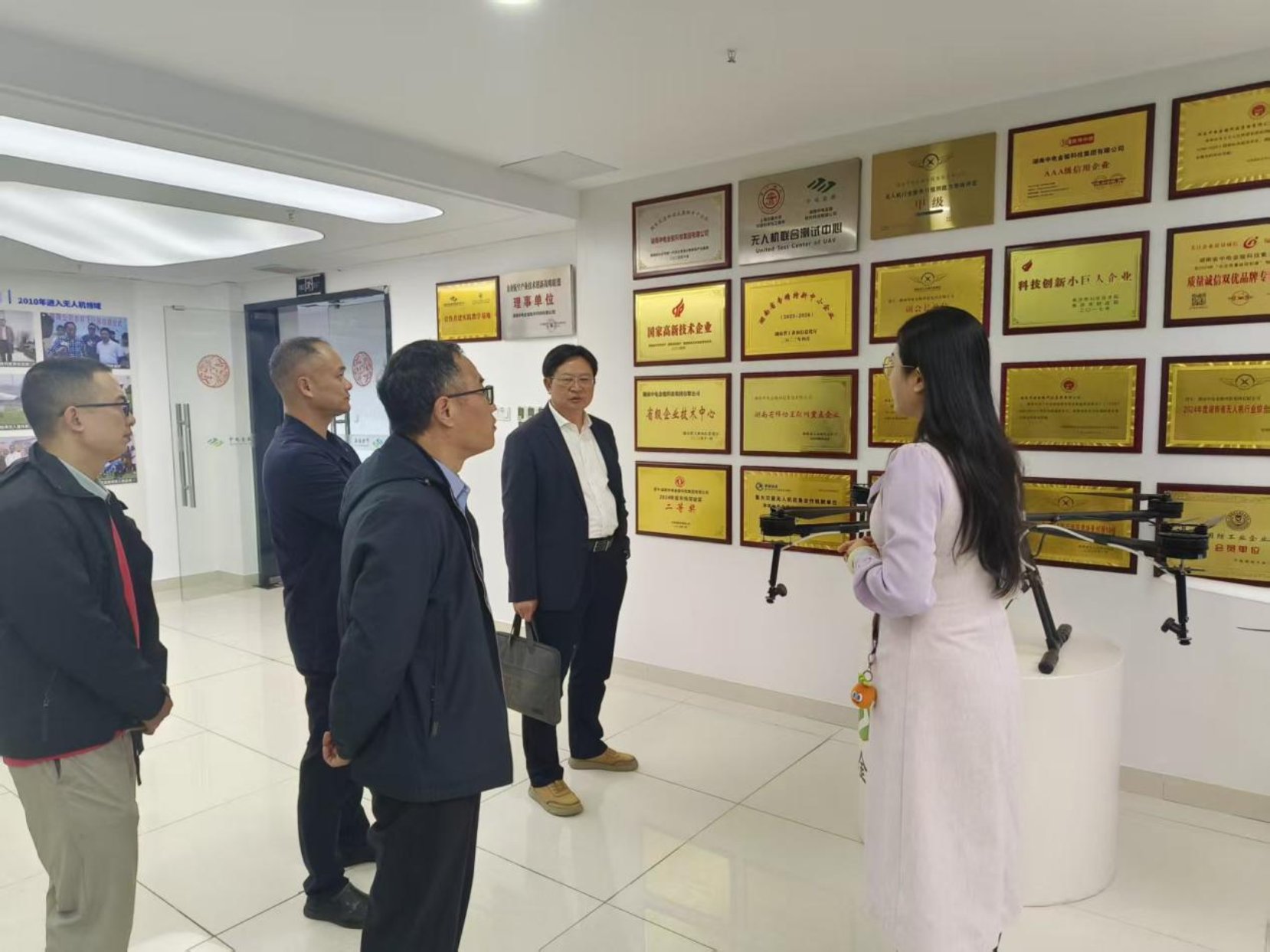 本网讯(信科学院 刘伟) 为进一步深化校企合作,推动无人机技术在农业领域的创新发展,10月24日下午,湖南农业大学信息与智能科学技术学院院长李长云、党委书记傅志强、副书记黄正军一行赴中电金骏科技有限公司开展实地考察与交流,双方就无人机培训与农业应用合作进行了深入洽谈,并达成初步合作意向。